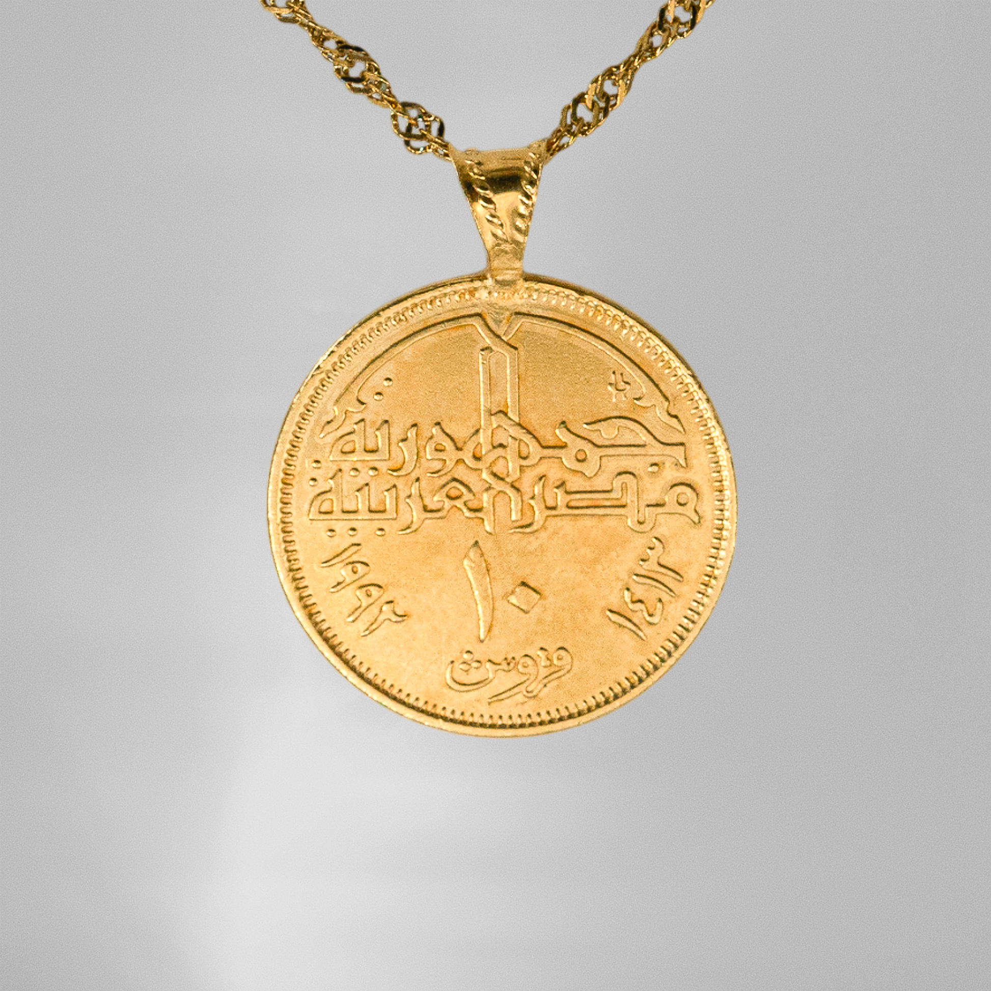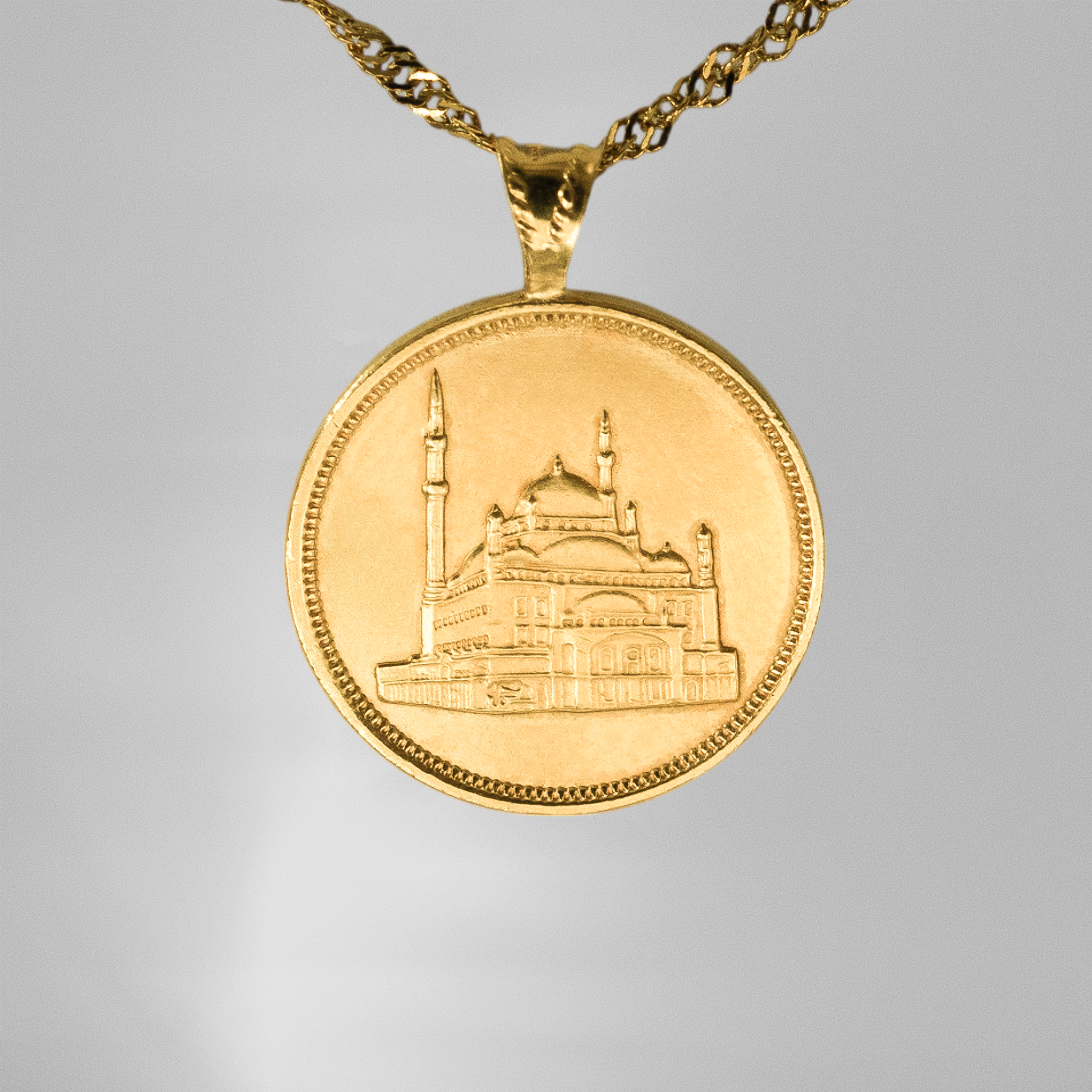 Bijou réalisé à partir d'une pièce égyptienne datant de 1992 représentant une mosquée, "masjid" en arabe.