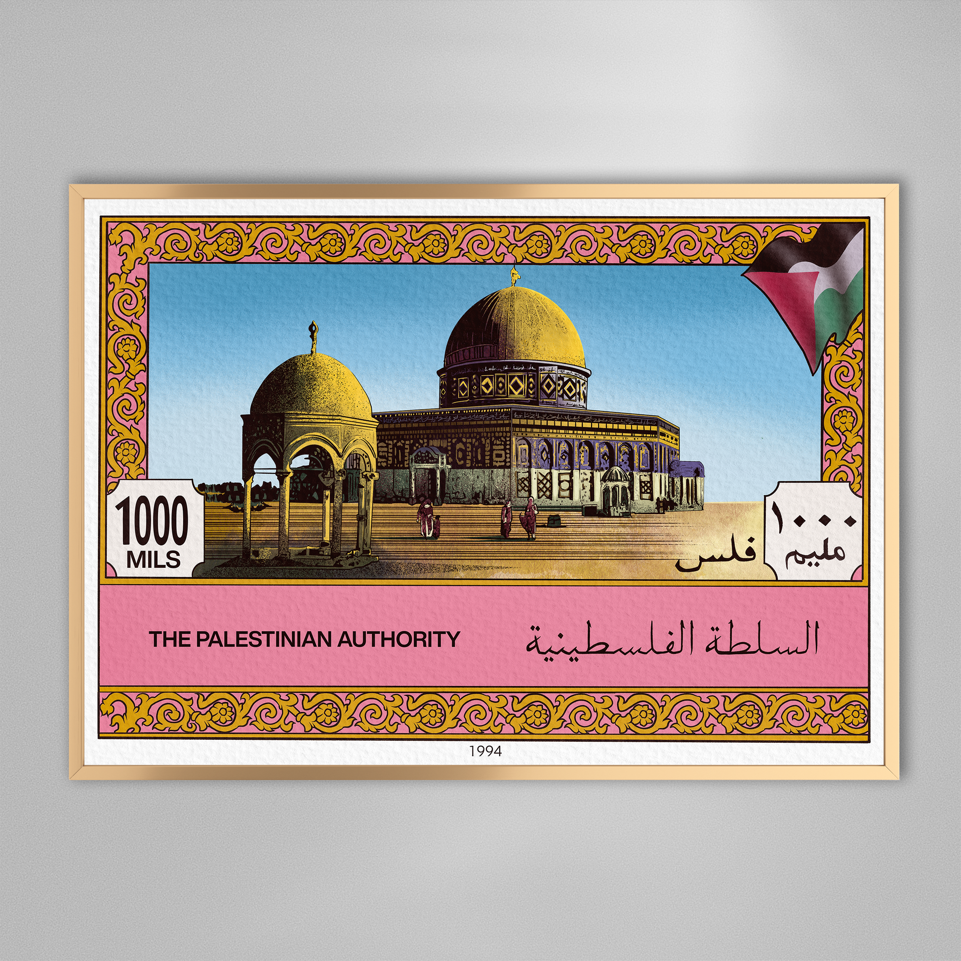 À l’aube, la lumière se pose sur les pierres d’Al-Qods. Le Dôme du Rocher capte les premiers rayons, comme un miroir tendu vers le ciel. C’est ce moment que ce timbre de 1994 immortalise : celui d’un jour nouveau, porteur d’espoir et de mémoire.